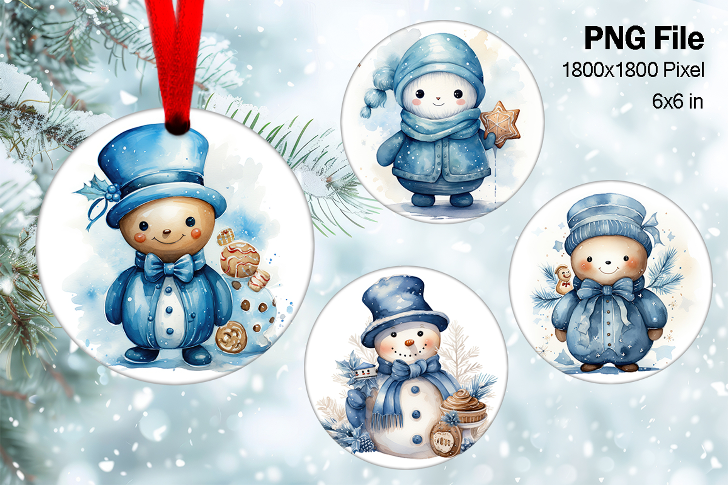 Snowman Christmas Ornament Round Circle Tree Decorate PNG17 example image 1