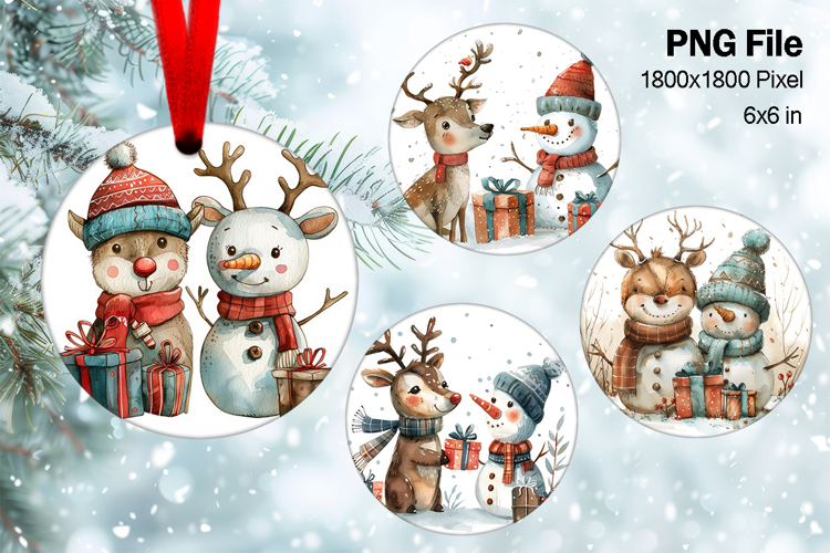 Snowman Christmas Ornament Round Circle Tree Decorate PNG70 example image 1