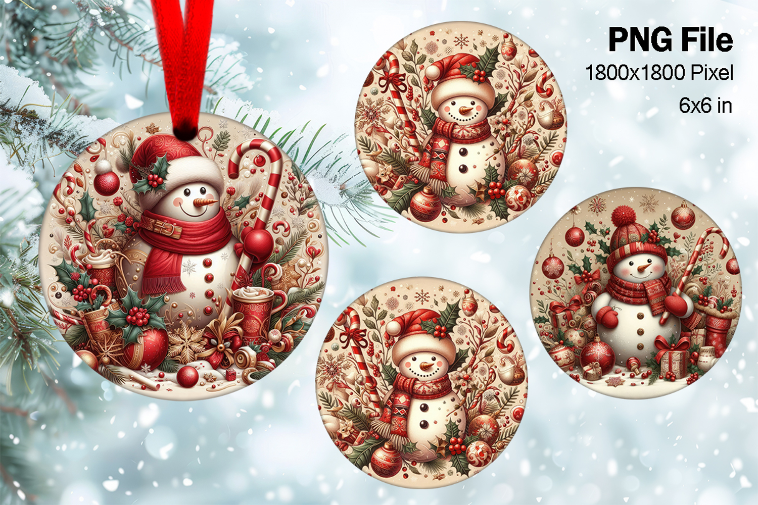 Snowman Christmas Ornament Round Circle Tree Decorate PNG108 example image 1