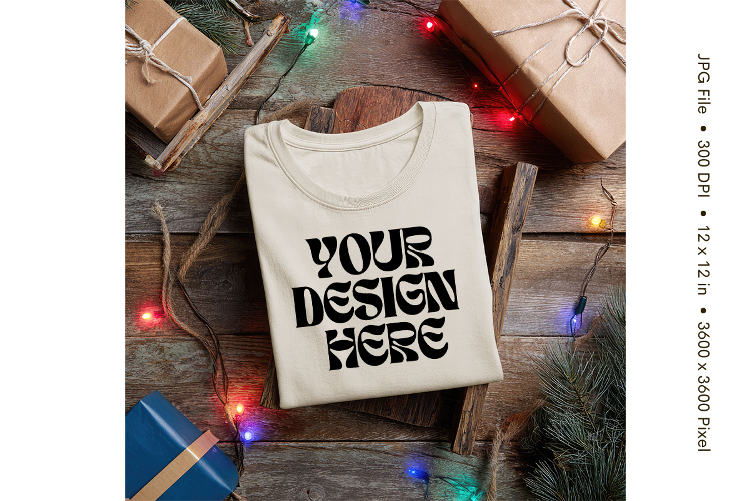 Christmas T-shirt Mockups Bella and Canvas Top View_138 example image 1