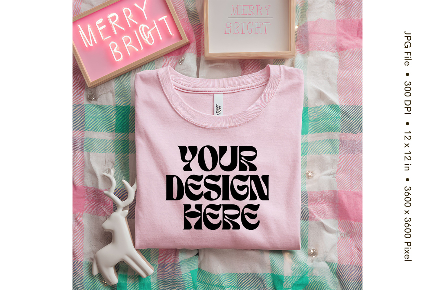 Christmas T-shirt Mockups Bella and Canvas Top View_187