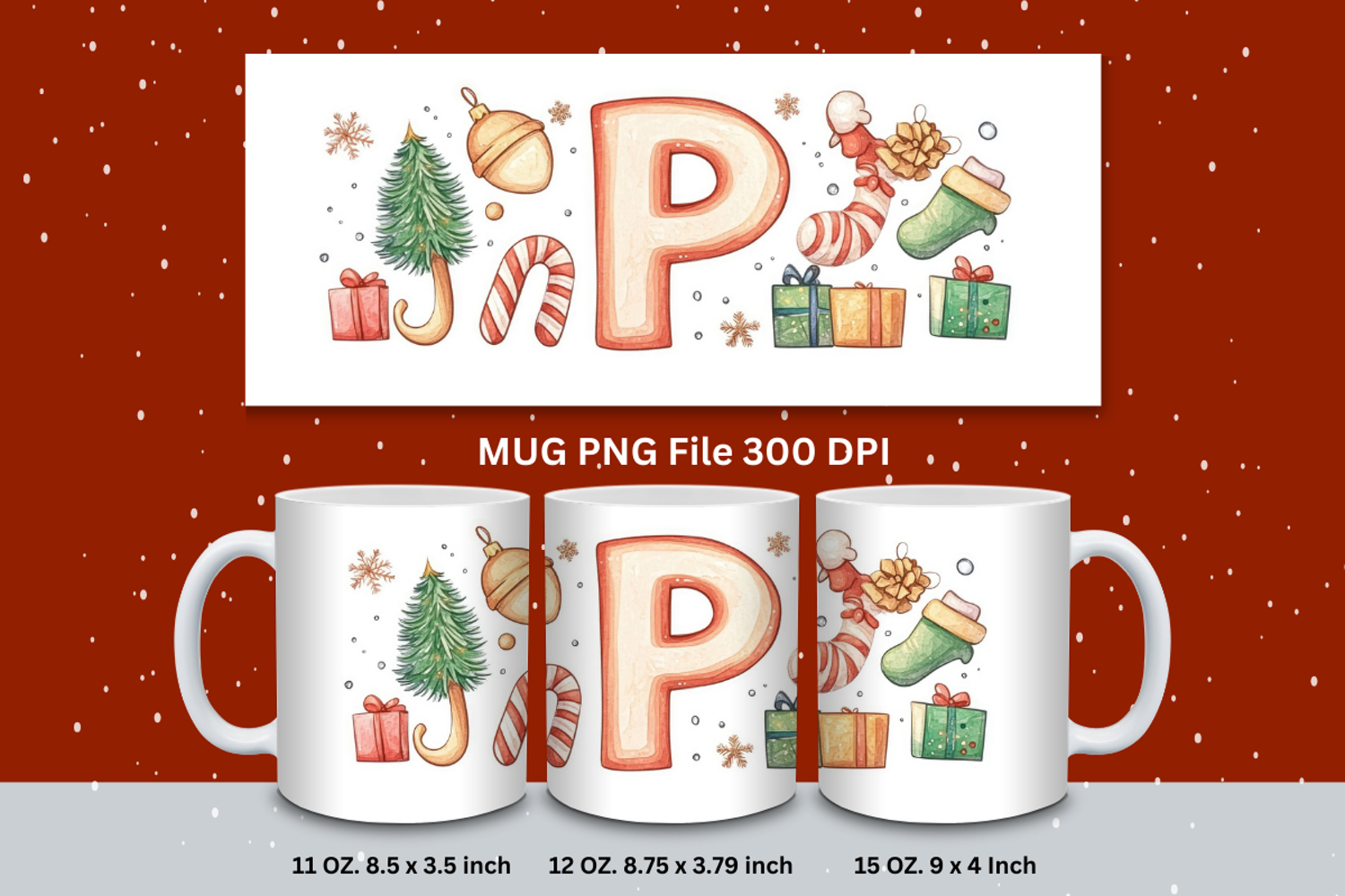 Christmas Mug Customizable Custom Winter Coffee Cup Letter P example image 1