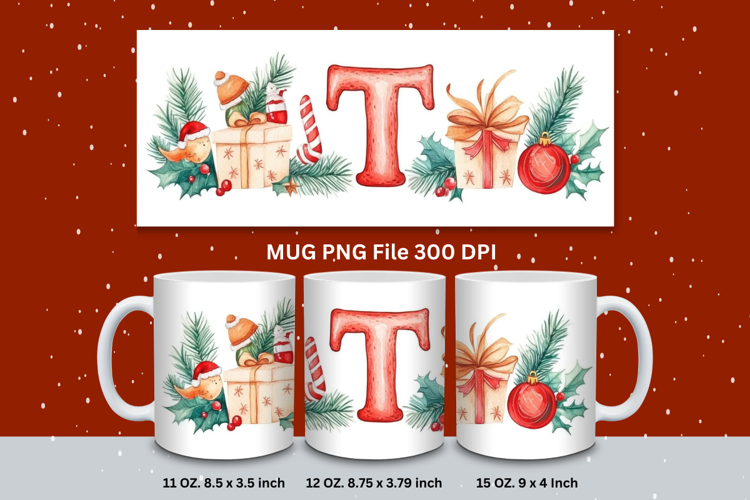 Christmas Mug Customizable Custom Winter Coffee Cup Letter T example image 1