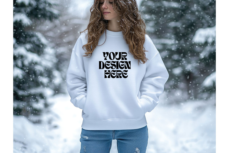 Christmas White Sweatshirt Model Mockup Gildan18000 Oversize example image 1