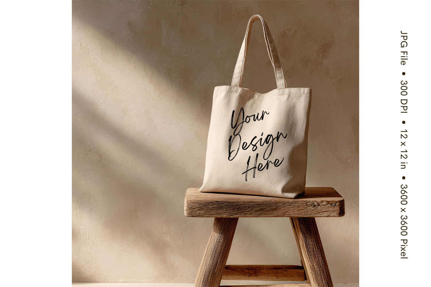 Canvas Tote Bag Mockup Shopping Bag White Natural Blank_47 example image 1
