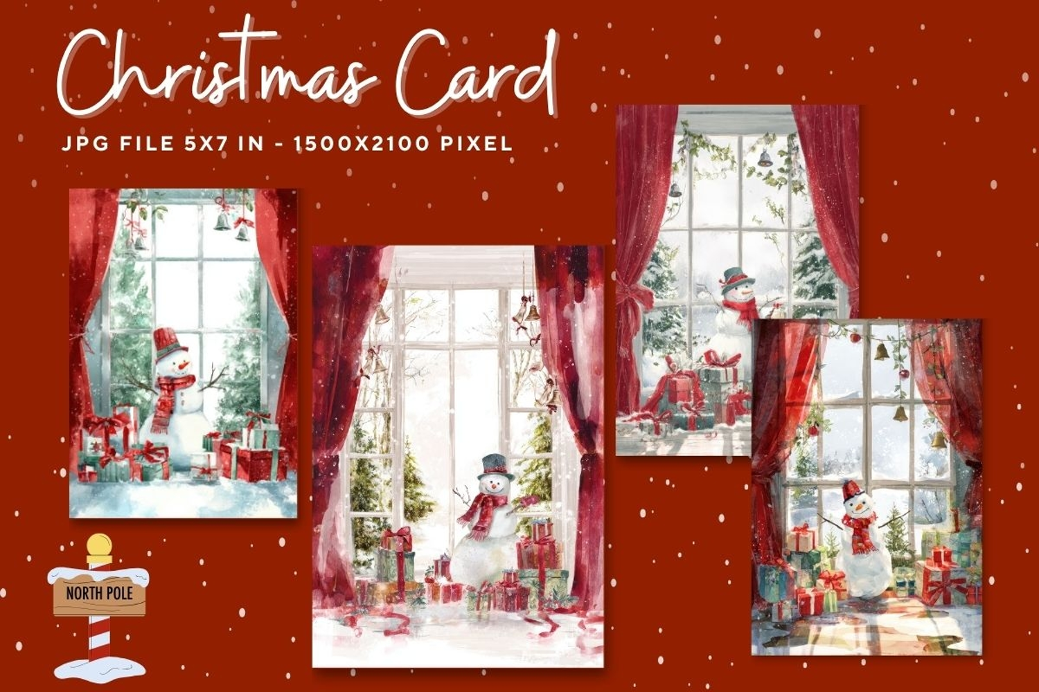 Merry Christmas Card Vintage Winter Snow Greeting Card_7 example image 1