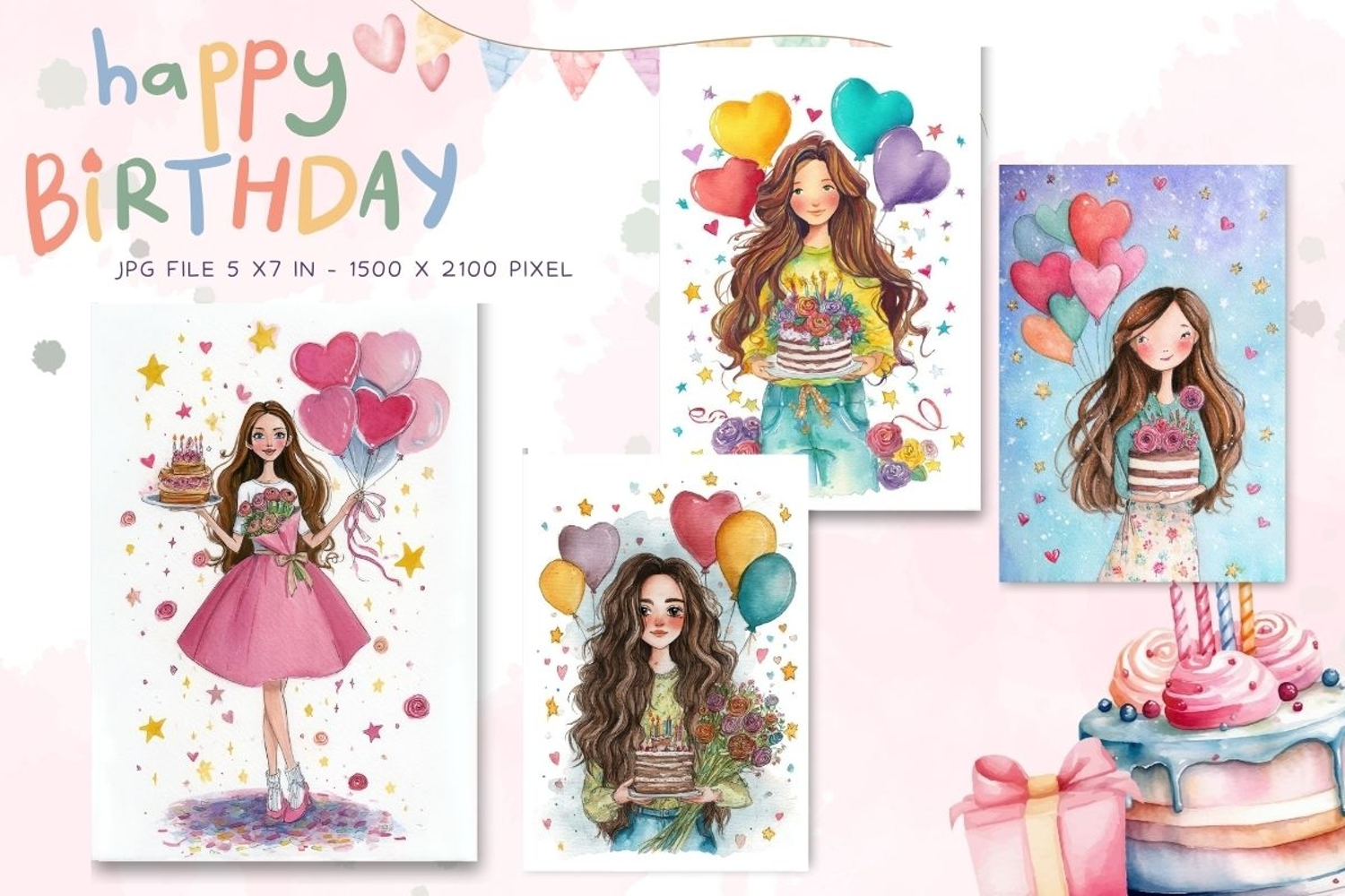 Happy Birthday Card Printable Flower Greeting Gift Card_23 example image 1