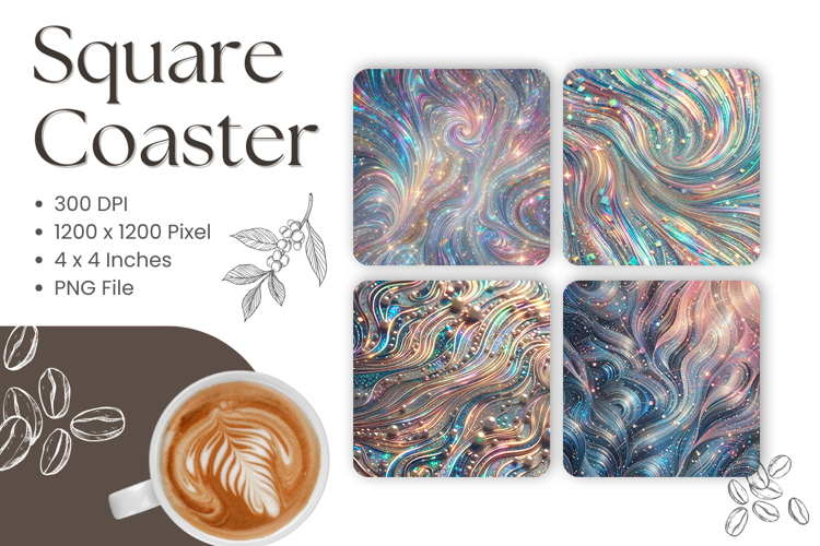Coasters Square Coaster 4 Square Coasters Coasters Sublimation Coasters Design Glitter Square Coaster Holographic Square Coaster Holographic Glitter Square Coaster Vibrant Rainbow Square Coaster Vibrant Holographic Coaster