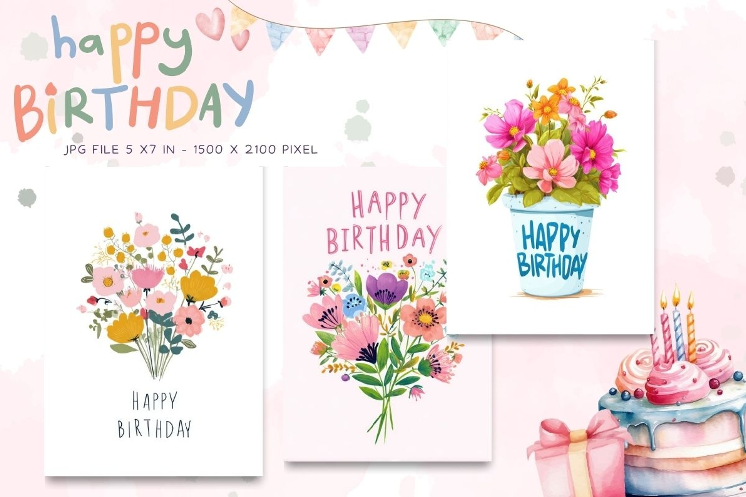 Happy Birthday Card Printable Flower Greeting Gift Card_51 example image 1