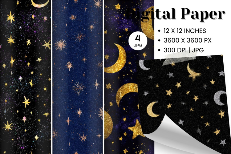 Digital Paper Pack Scrapbook Paper Craft Supplies Background Paper Cloud Digital Paper Watercolor Cloud Cloud Backdrop Moon Star Backdrop Moon Star Bg Moon Star Pattern
