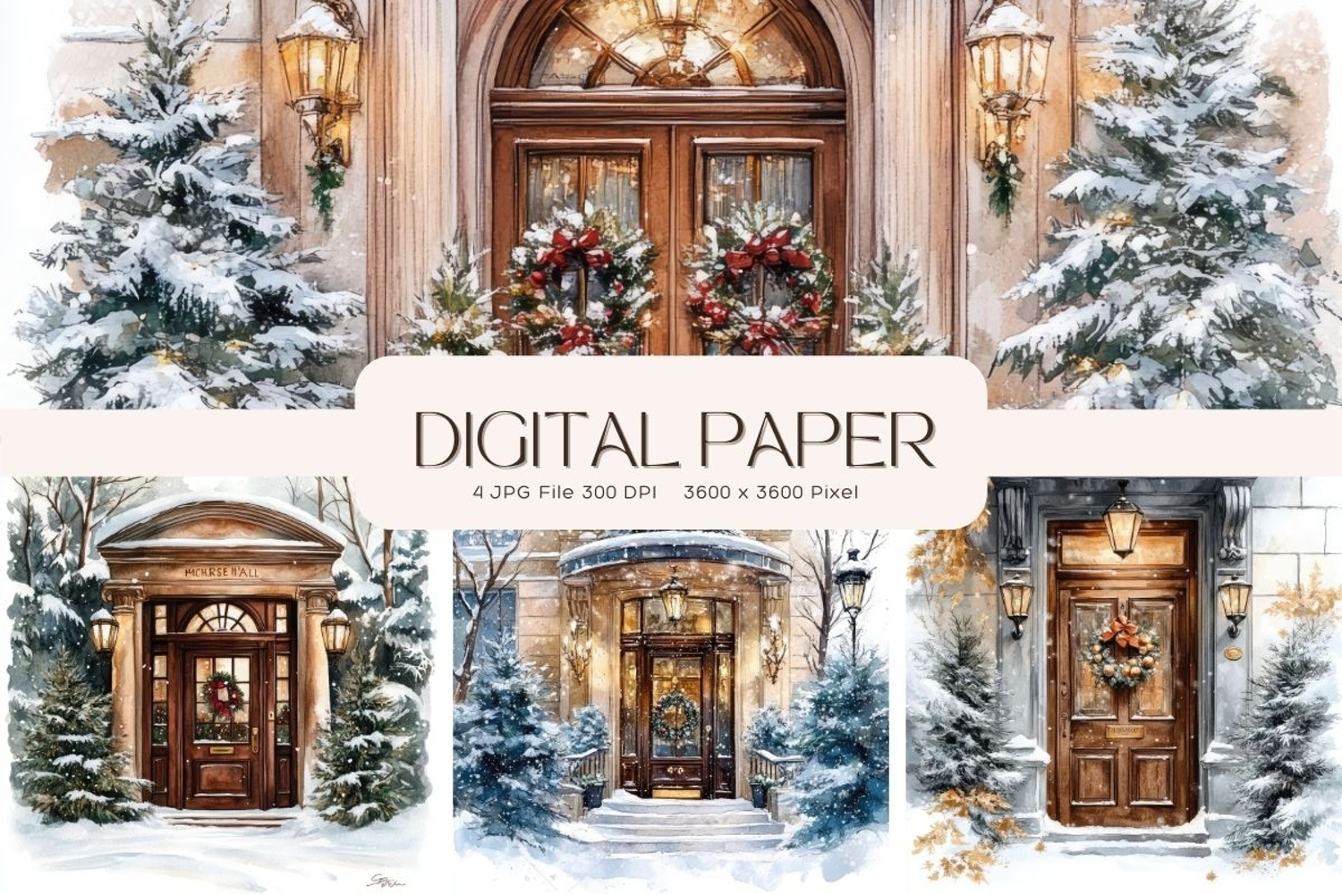 Christmas House Background Seamless Pattern Gift Wrap_3 example image 1