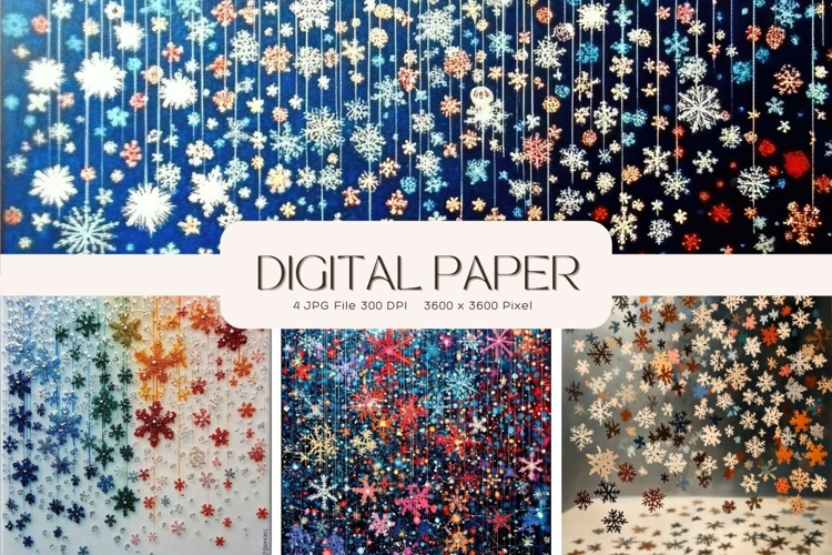 Snowflake Christmas Background Digital Paper Pack Craft Supplies Background Paper Gift Wrapping Snowflake Digital Paper Snowflake Glitter Party Wallpaper Bokeh Sparkle Glitter