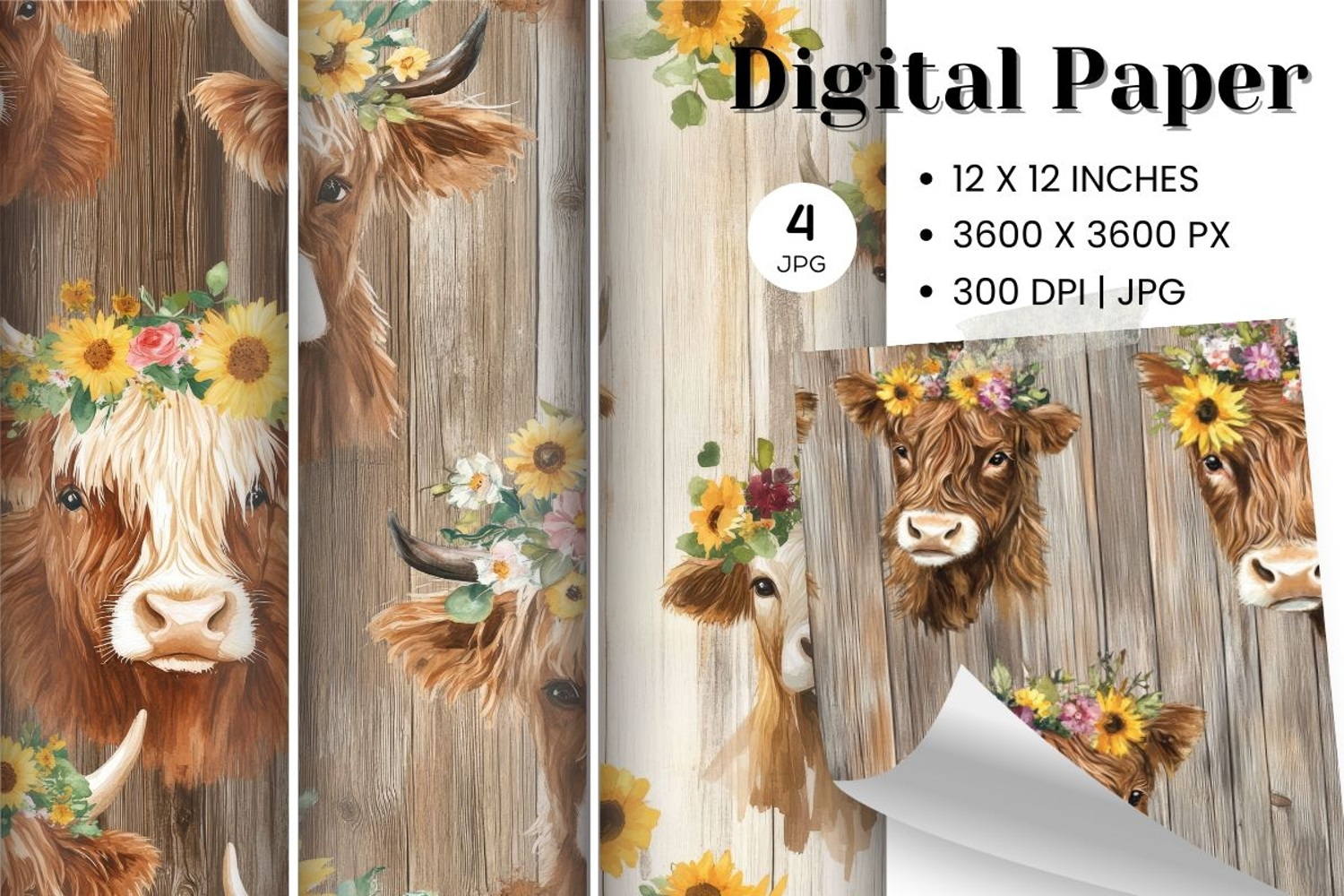 Highland Cow Background Cow Flower Vintage Wallpaper Pattern example image 1