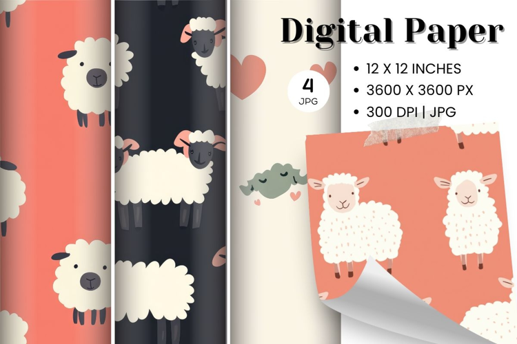 Seamless Pattern Digital Paper Pack Craft Supplies Background Paper Wedding Backdrops Sheep Digital Paper Sheep Seamless Pattern Party Wallpaper Sheep Background Sheep Wallpaper