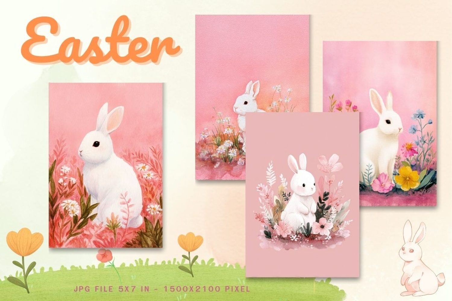 Similar Design Products to Easter Bunny Card Flower Rabbit Greeting Printable Card_8