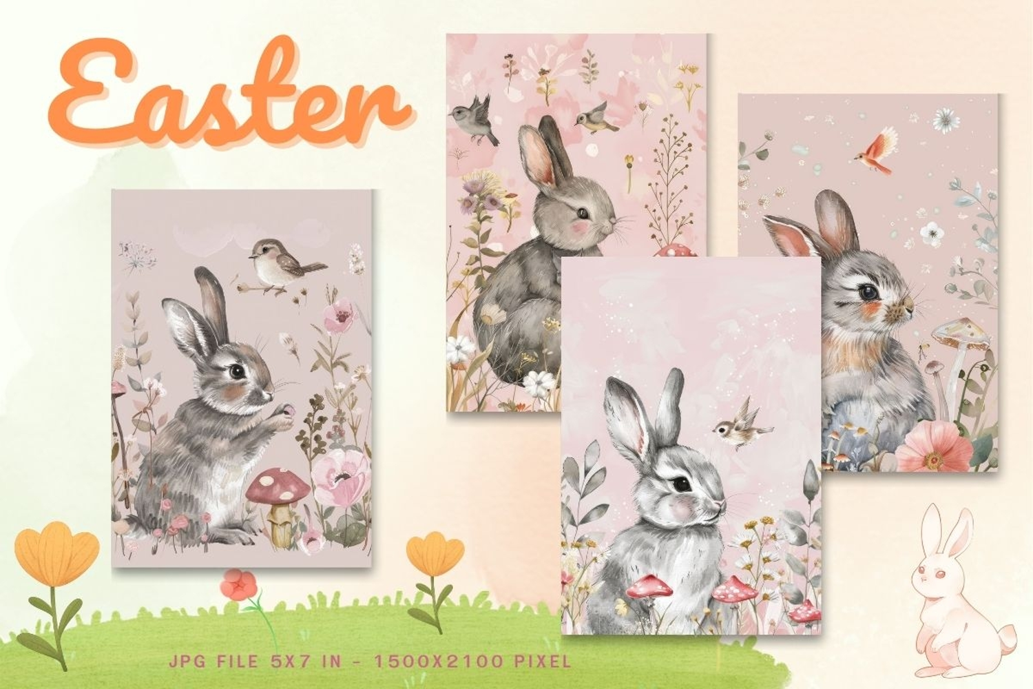 Easter Bunny Card Flower Rabbit Greeting Printable Card_27