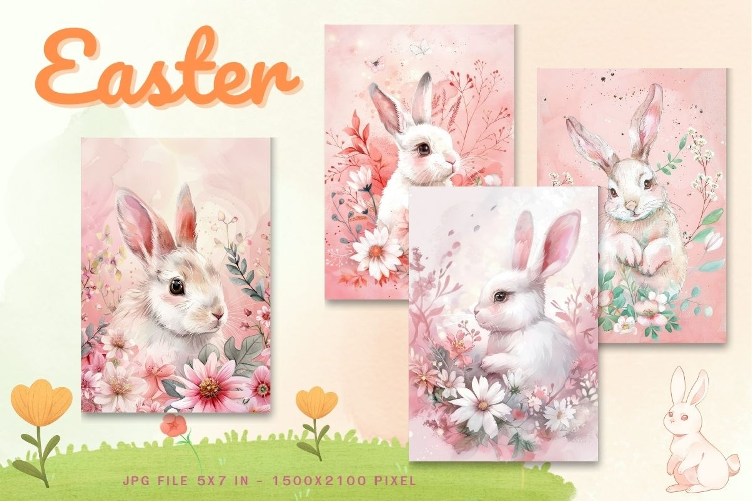 Easter Bunny Card Flower Rabbit Greeting Printable Card_29 example image 1