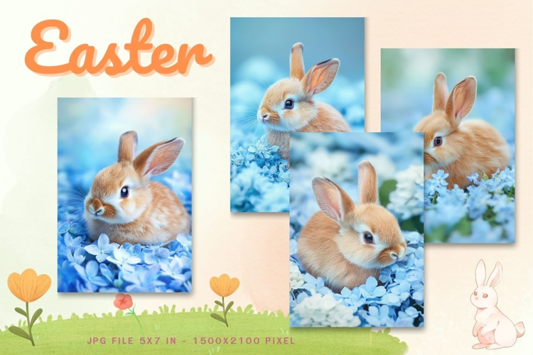 Easter Bunny Card Flower Rabbit Greeting Printable Card_32 example image 1