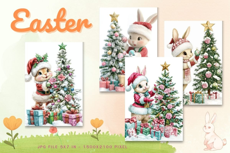 Easter Bunny Card Flower Rabbit Greeting Printable Card_43 example image 1