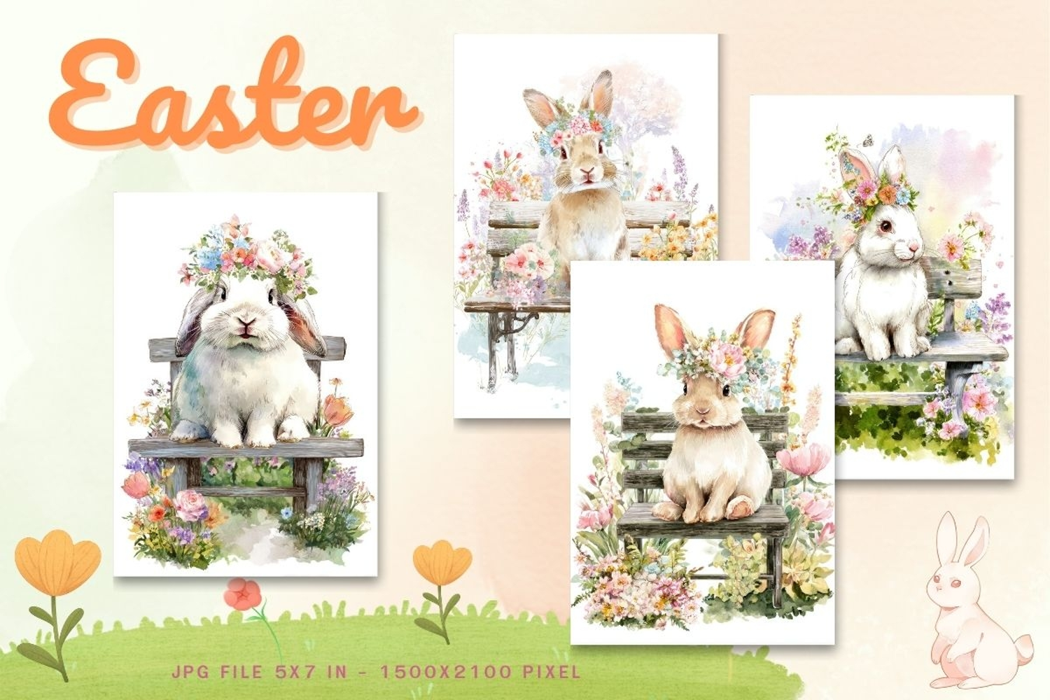 Easter Bunny Card Flower Rabbit Greeting Printable Card_57