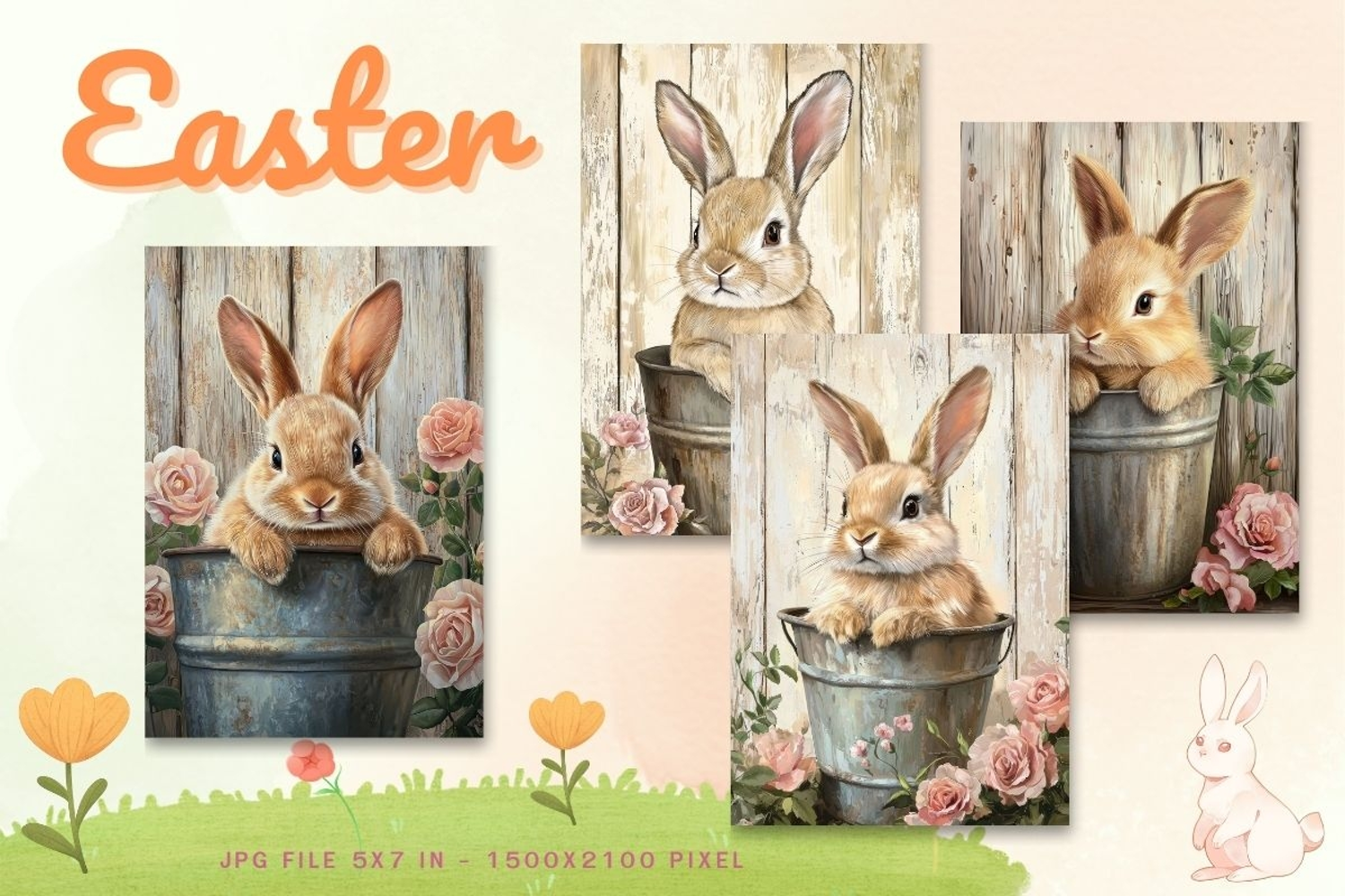 Easter Bunny Card Flower Rabbit Greeting Printable Card_68 example image 1