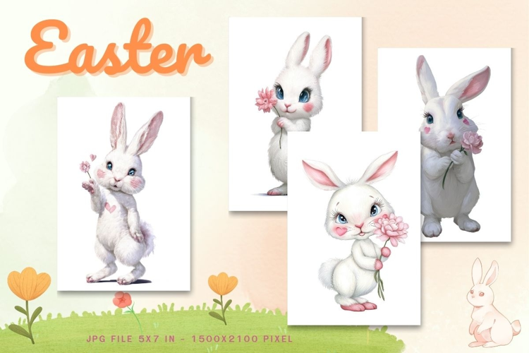 Easter Bunny Card Flower Rabbit Greeting Printable Card_83 example image 1