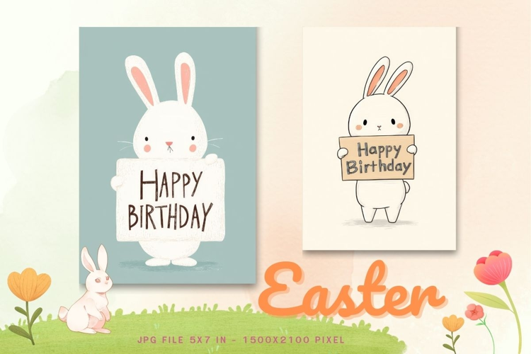 Easter Bunny Card Flower Rabbit Greeting Printable Card_124 example image 1
