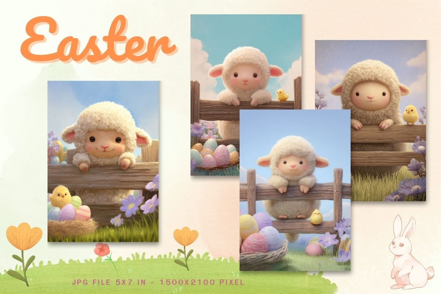 Similar Design Products to Easter Bunny Card Flower Rabbit Greeting Printable Card_25