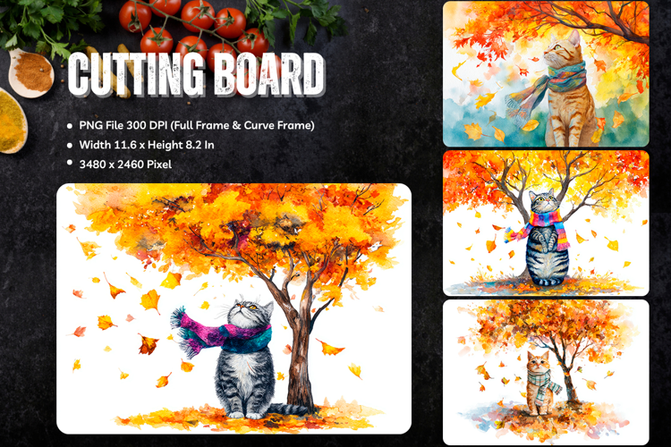 Cat Cutting Board Kitchen Fall Autumn Chopping Board_62 example image 1