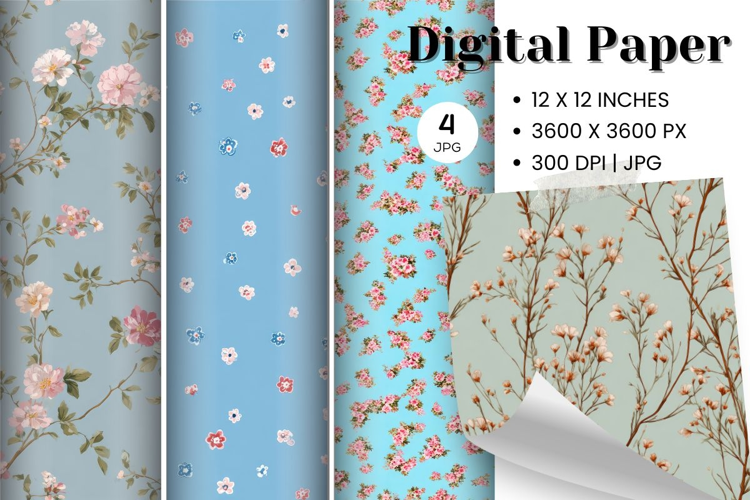 Flower Digital Paper Pack Flower Pattern Craft Supplies Background Paper Flower Digital Paper Flower Wallpaper Flower Seamless Pattern Wedding Backdrops Party Wallpaper