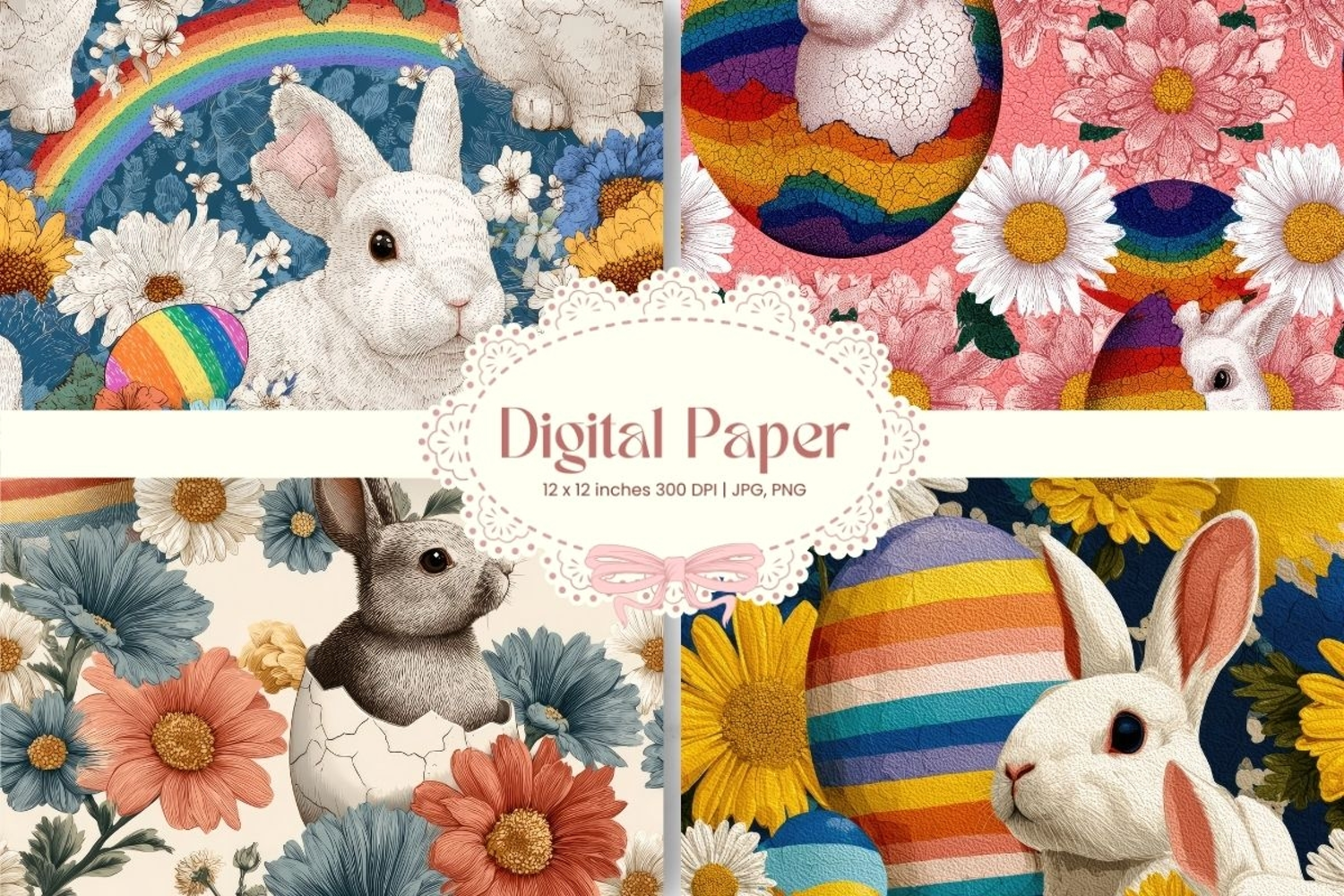 Easter Bunny Background Backdrop Rabbit Wallpaper Wall Art5 example image 1