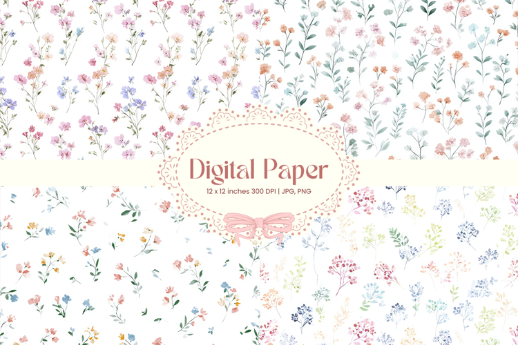 Flower Digital Paper Pack Flower Pattern Craft Supplies Background Paper Flower Digital Paper Flower Wallpaper Flower Seamless Pattern Wedding Backdrops Party Wallpaper