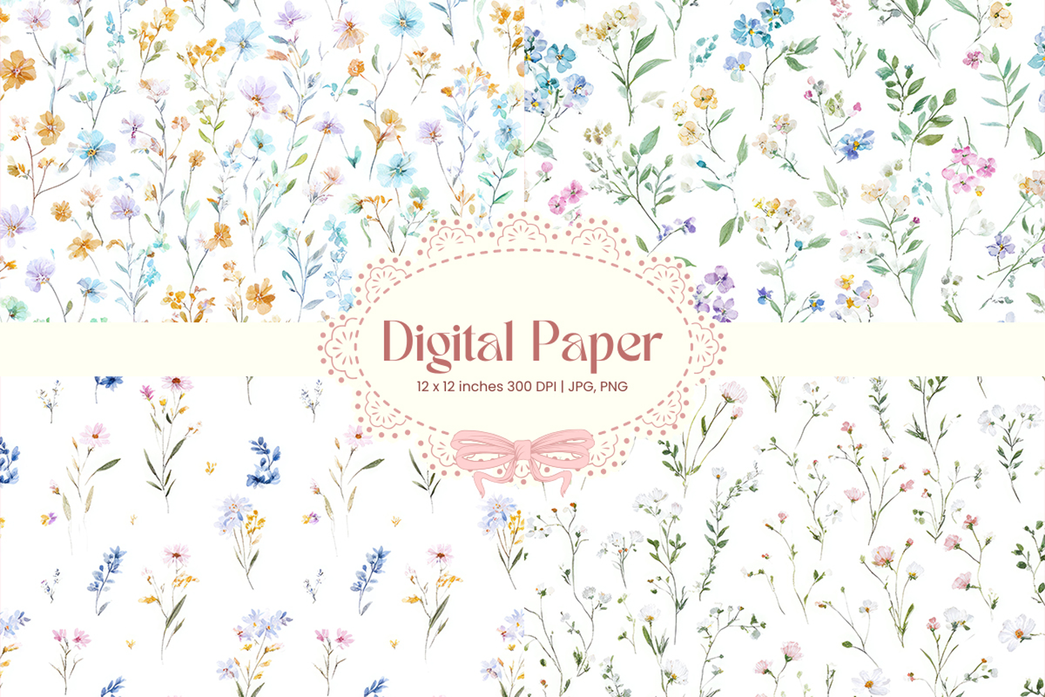 Flower Digital Paper Pack Flower Pattern Craft Supplies Background Paper Flower Digital Paper Flower Wallpaper Flower Seamless Pattern Wedding Backdrops Party Wallpaper