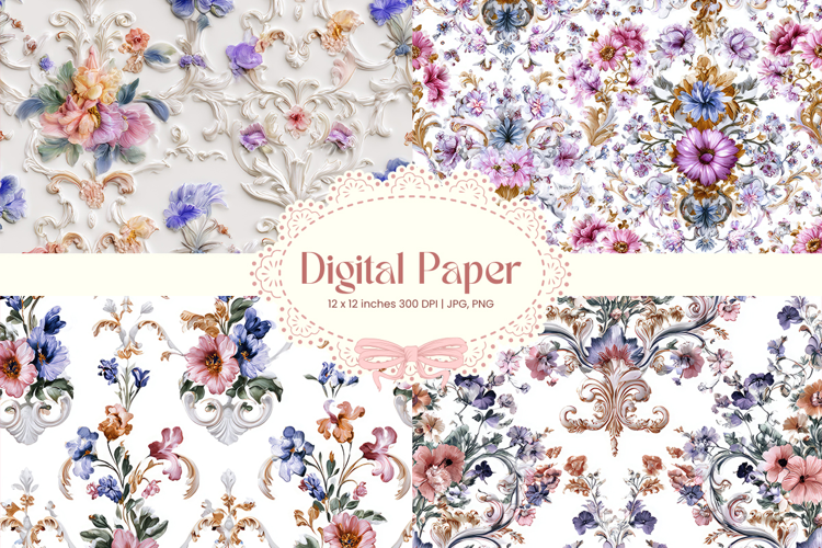Flower Digital Paper Pack Flower Pattern Craft Supplies Background Paper Flower Digital Paper Flower Wallpaper Flower Seamless Pattern Wedding Backdrops Party Wallpaper