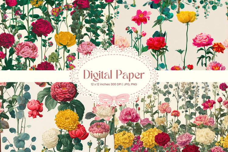 Flower Digital Paper Pack Flower Pattern Craft Supplies Background Paper Flower Digital Paper Flower Wallpaper Flower Seamless Pattern Wedding Backdrops Party Wallpaper