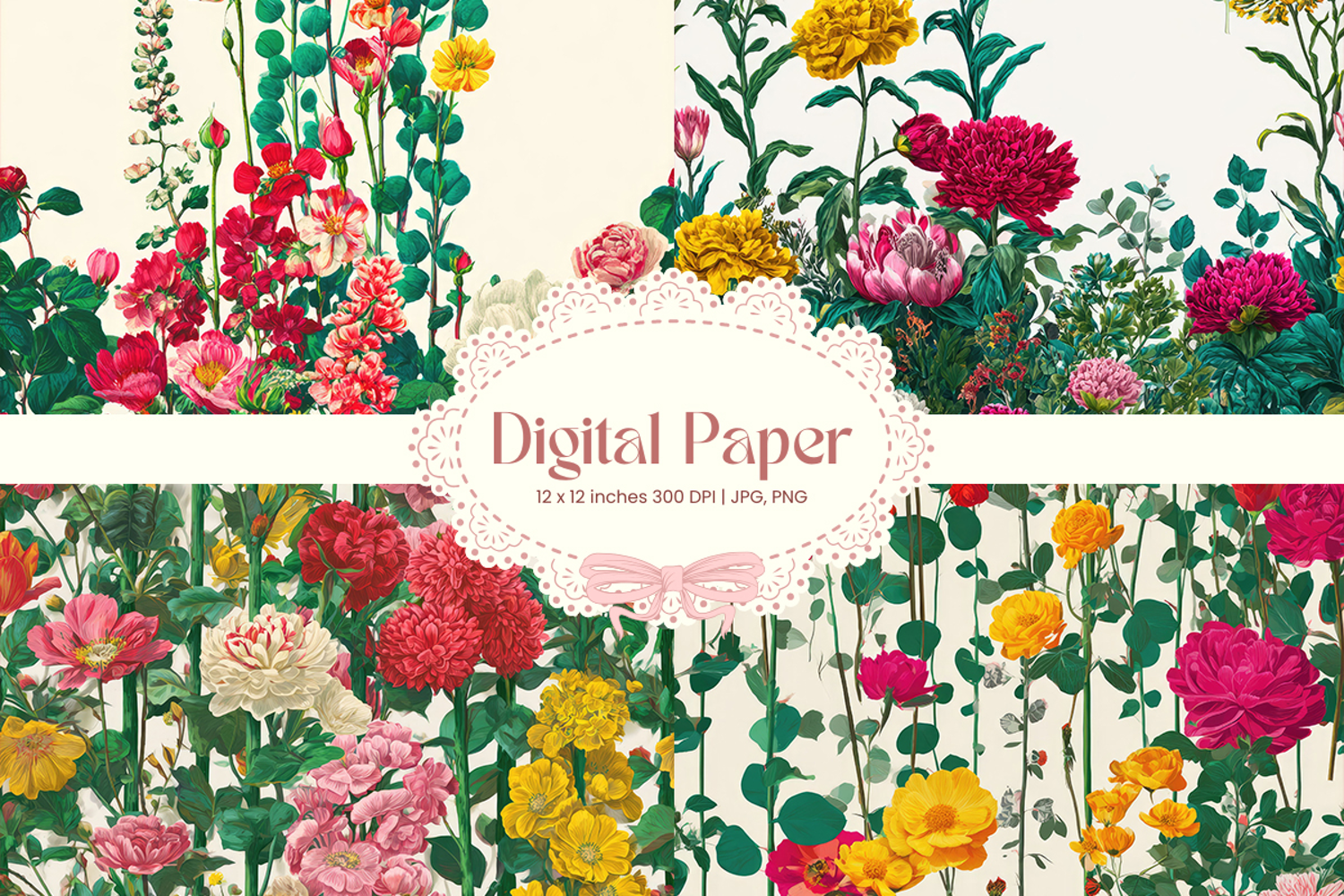 Flower Digital Paper Pack Flower Pattern Craft Supplies Background Paper Flower Digital Paper Flower Wallpaper Flower Seamless Pattern Wedding Backdrops Party Wallpaper
