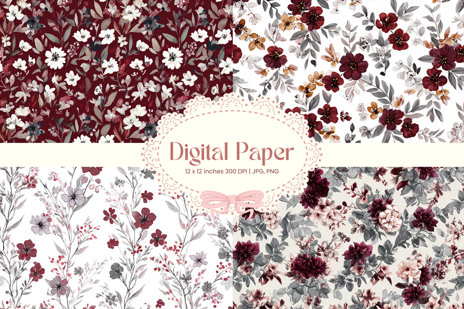 Flower Digital Paper Pack Flower Pattern Craft Supplies Background Paper Flower Digital Paper Flower Wallpaper Flower Seamless Pattern Wedding Backdrops Party Wallpaper