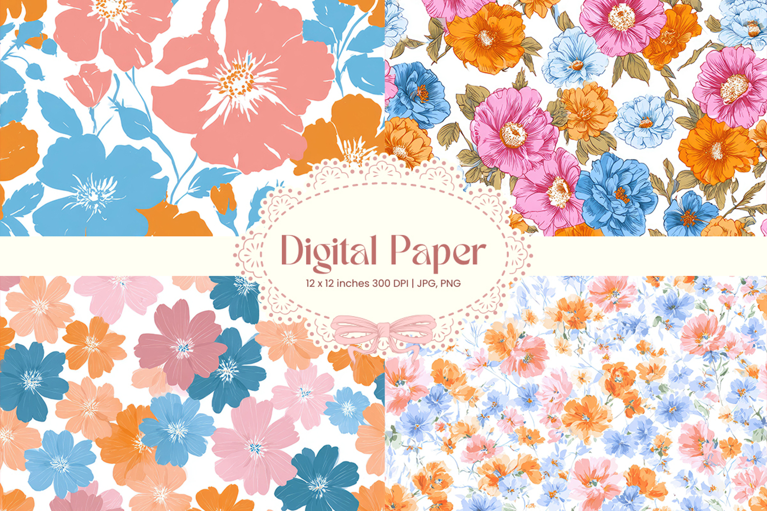 Flower Digital Paper Pack Flower Pattern Craft Supplies Background Paper Flower Digital Paper Flower Wallpaper Flower Seamless Pattern Wedding Backdrops Party Wallpaper