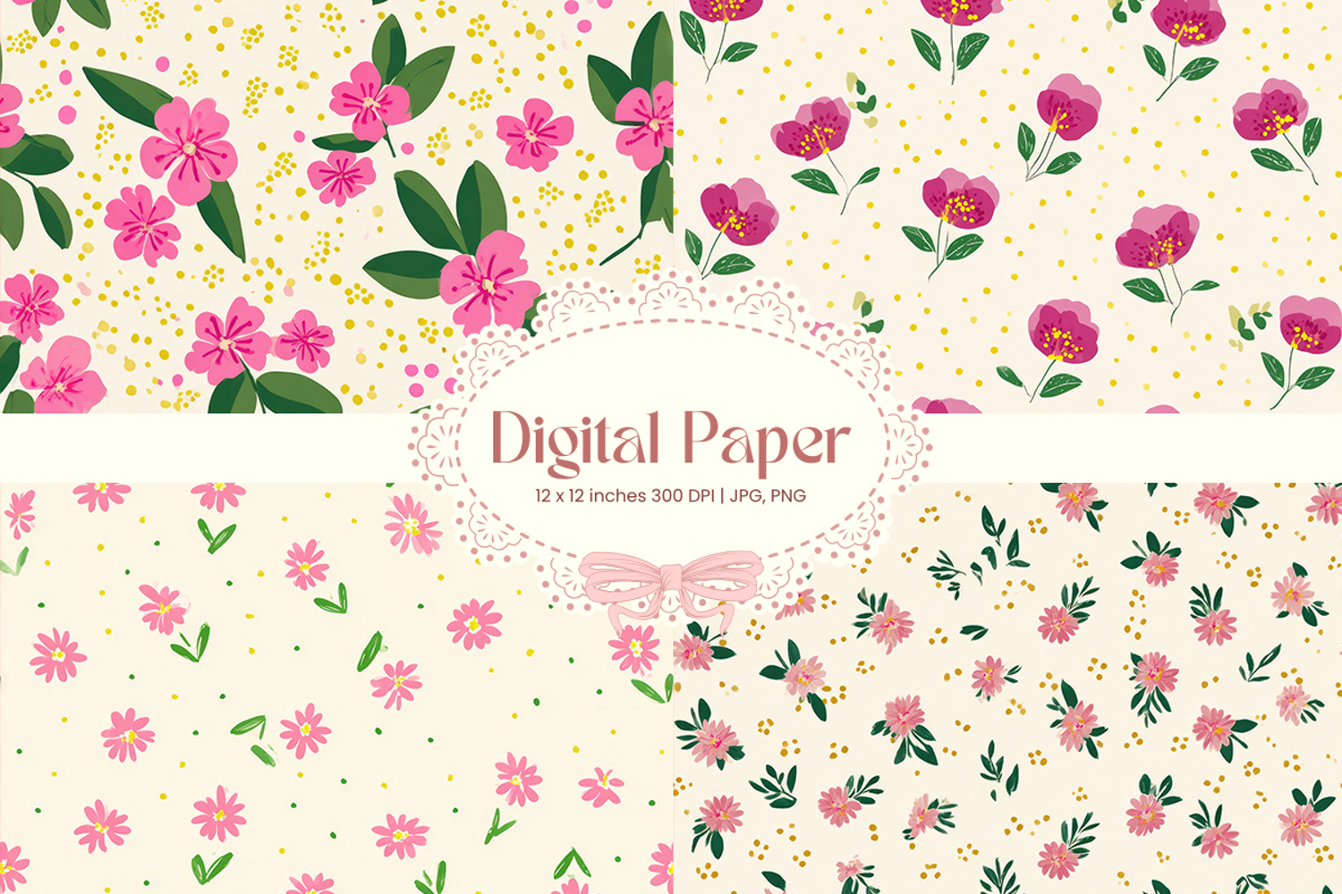 Flower Digital Paper Pack Flower Pattern Craft Supplies Background Paper Flower Digital Paper Flower Wallpaper Flower Seamless Pattern Wedding Backdrops Party Wallpaper