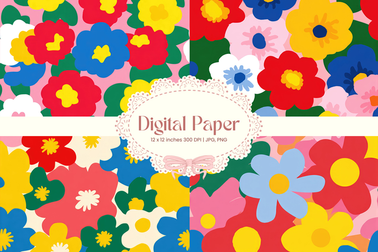 Flower Digital Paper Pack Flower Pattern Craft Supplies Background Paper Flower Digital Paper Flower Wallpaper Flower Seamless Pattern Wedding Backdrops Party Wallpaper