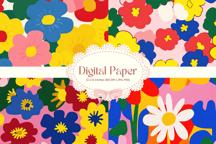 Flower Digital Paper Pack Flower Pattern Craft Supplies Background Paper Flower Digital Paper Flower Wallpaper Flower Seamless Pattern Wedding Backdrops Party Wallpaper