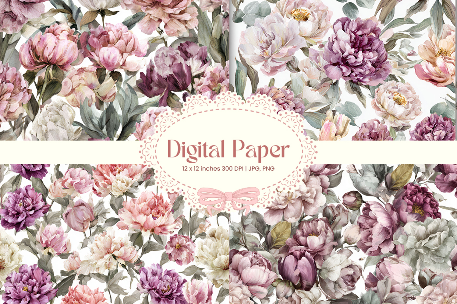 Flower Digital Paper Pack Flower Pattern Craft Supplies Background Paper Flower Digital Paper Flower Wallpaper Flower Seamless Pattern Wedding Backdrops Party Wallpaper