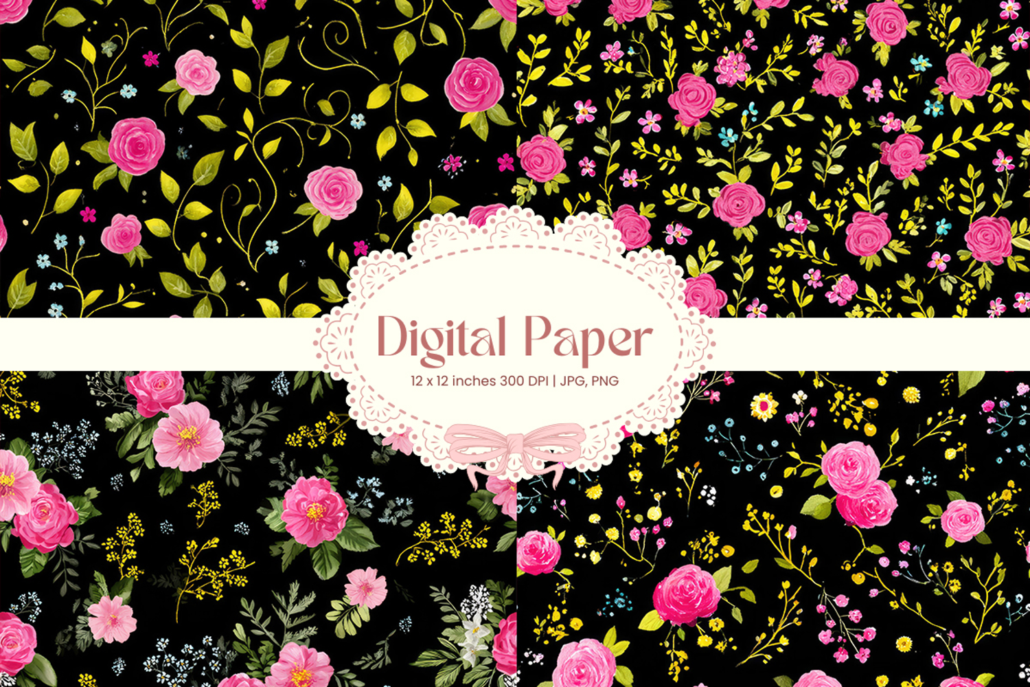 Flower Digital Paper Pack Flower Pattern Craft Supplies Background Paper Flower Digital Paper Flower Wallpaper Flower Seamless Pattern Wedding Backdrops Party Wallpaper