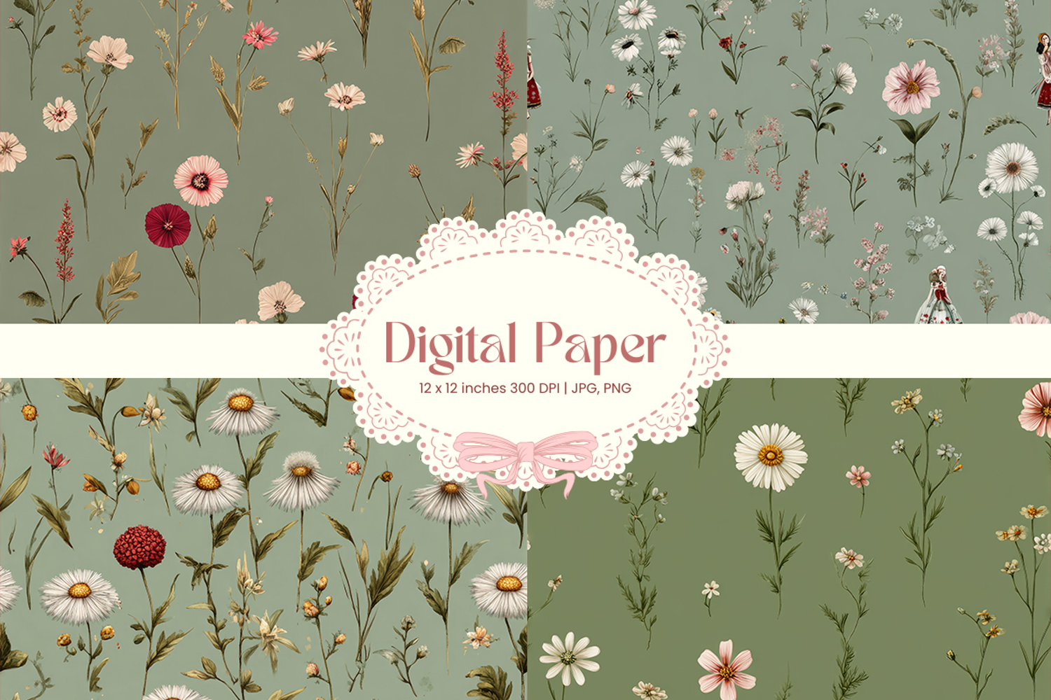 Flower Digital Paper Pack Flower Pattern Craft Supplies Background Paper Flower Digital Paper Flower Wallpaper Flower Seamless Pattern Wedding Backdrops Party Wallpaper