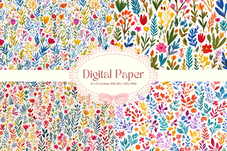 Flower Digital Paper Pack Flower Pattern Craft Supplies Background Paper Flower Digital Paper Flower Wallpaper Flower Seamless Pattern Wedding Backdrops Party Wallpaper