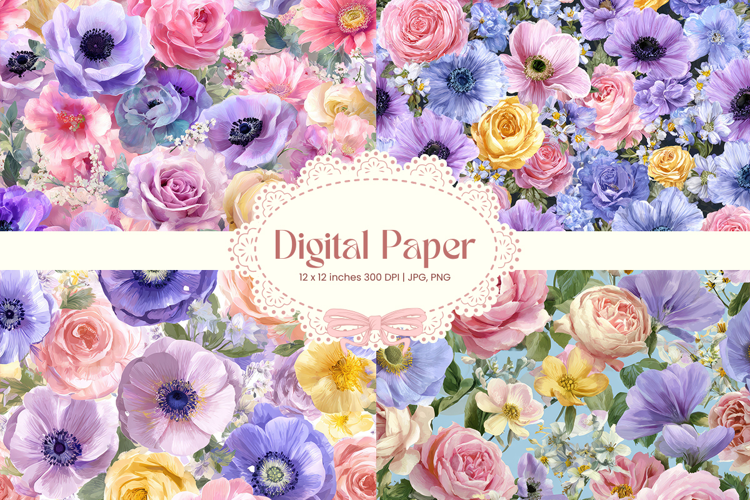 Flower Digital Paper Pack Flower Pattern Craft Supplies Background Paper Flower Digital Paper Flower Wallpaper Flower Seamless Pattern Wedding Backdrops Party Wallpaper