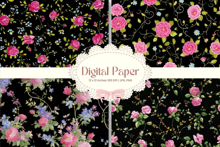 Flower Digital Paper Pack Flower Pattern Craft Supplies Background Paper Flower Digital Paper Flower Wallpaper Flower Seamless Pattern Wedding Backdrops Party Wallpaper
