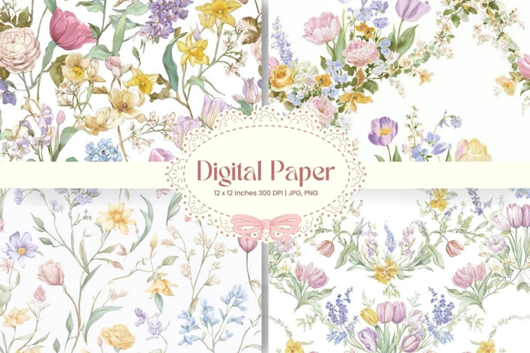 Flower Digital Paper Pack Flower Pattern Craft Supplies Background Paper Flower Digital Paper Flower Wallpaper Flower Seamless Pattern Wedding Backdrops Party Wallpaper