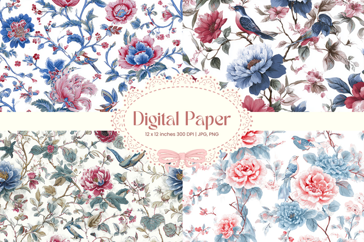 Flower Digital Paper Pack Flower Pattern Craft Supplies Background Paper Flower Digital Paper Flower Wallpaper Flower Seamless Pattern Wedding Backdrops Party Wallpaper