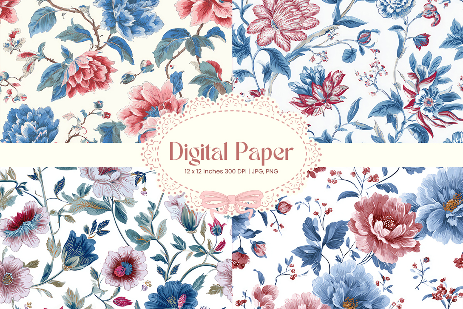 Flower Digital Paper Pack Flower Pattern Craft Supplies Background Paper Flower Digital Paper Flower Wallpaper Flower Seamless Pattern Wedding Backdrops Party Wallpaper